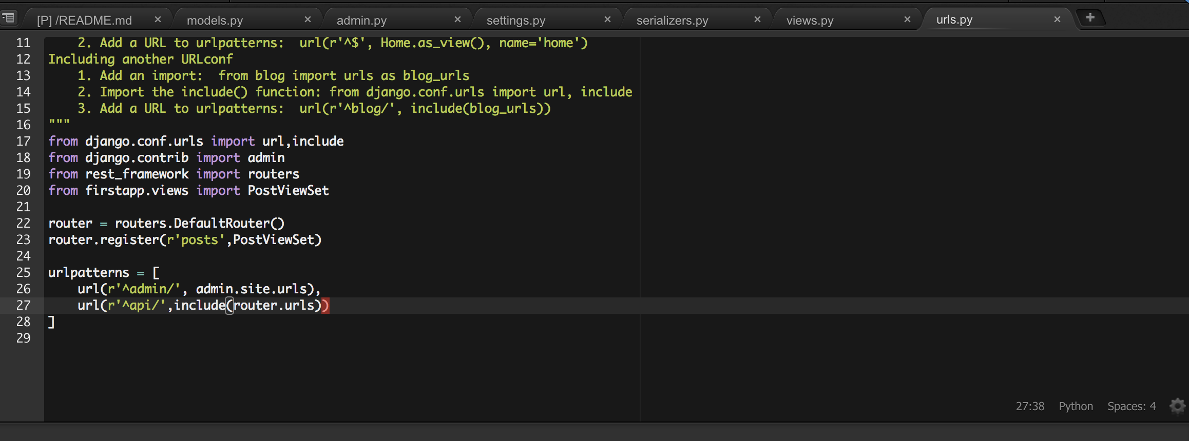 Once that is done, go ahead and create the serializer for the Post model as follows.