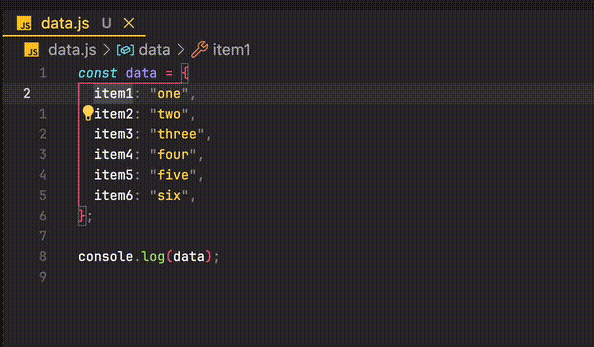 For example, let’s say I have a JavaScript object and I want to turn each value from a string to an array of strings. It’d be very tedious to manually edit line-by-line: