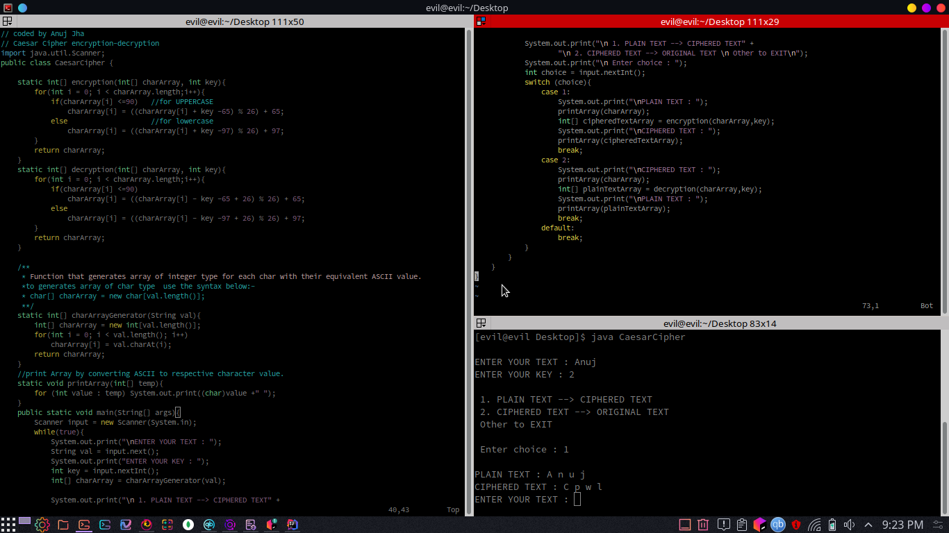 System.out.print("\n 1. PLAIN TEXT --> CIPHERED TEXT" +