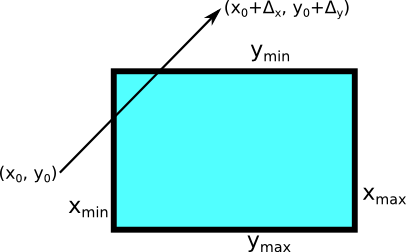 Consider a rectangle defined by x_min ≤ x ≤ x_max and y_min ≤ y ≤ y_max, and a line segment from (x_0, y_0) to (x_0 + Δ_x, y_0 + Δ_y). We'll be assuming at least one of Δ_x and Δ_y is nonzero.