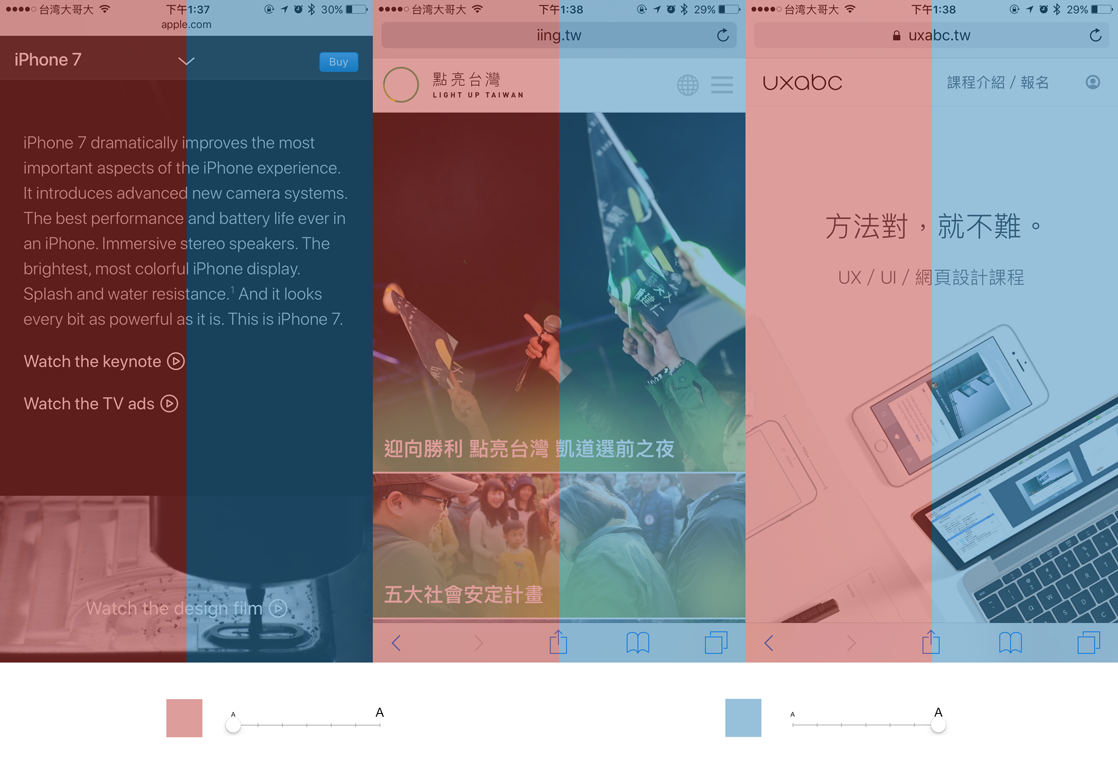 設計大師 EvenWu 告訴我們「網頁不是畫布,是資訊流」,但我發現這件事大家都只在乎版面,而少了我認為很重要的一點 "文字大小",事實上不管是 mac 的 Chrome、Safari、 還是 ios 都有單獨調整文字大小的設定。