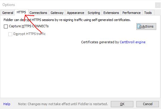 - Enable Capture HTTPS Connects and Decrypt HTTPS traffic. If you have to install certificates you will have to press yes and give administrator access.