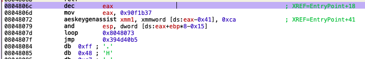 Ah, that’s a bit better, but aeskeygenassist and xmm registers? That’s pretty hardcore, let’s step through stuff in our debugger and see what’s this actually does.