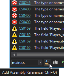 You'll see some errors if you are missing assembly references or bad code. In our case, we are missing ReLogic.dll. Download it and then add it to dnSpy via "Add Assembly Reference":