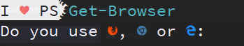 Read-Host (Text "Do you use $fg:OrangeRed&nf-fa-firefox;$fg:clear, $fg:SteelBlue&nf-fa-chrome;$fg:clear or $fg:DodgerBlue&nf-fa-edge;$fg:clear")