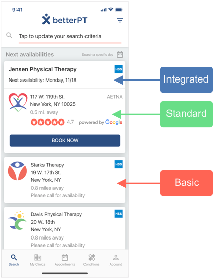 - Keep the “availabilities” list for integrated clinics