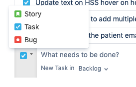 - Drag the newly created story in order of priority in the backlog list of other stories, tasks and bugs it now lives with. If something is very high priority, drag it to the top of the backlog. It is on the assignee to drag it into the current/future sprint.