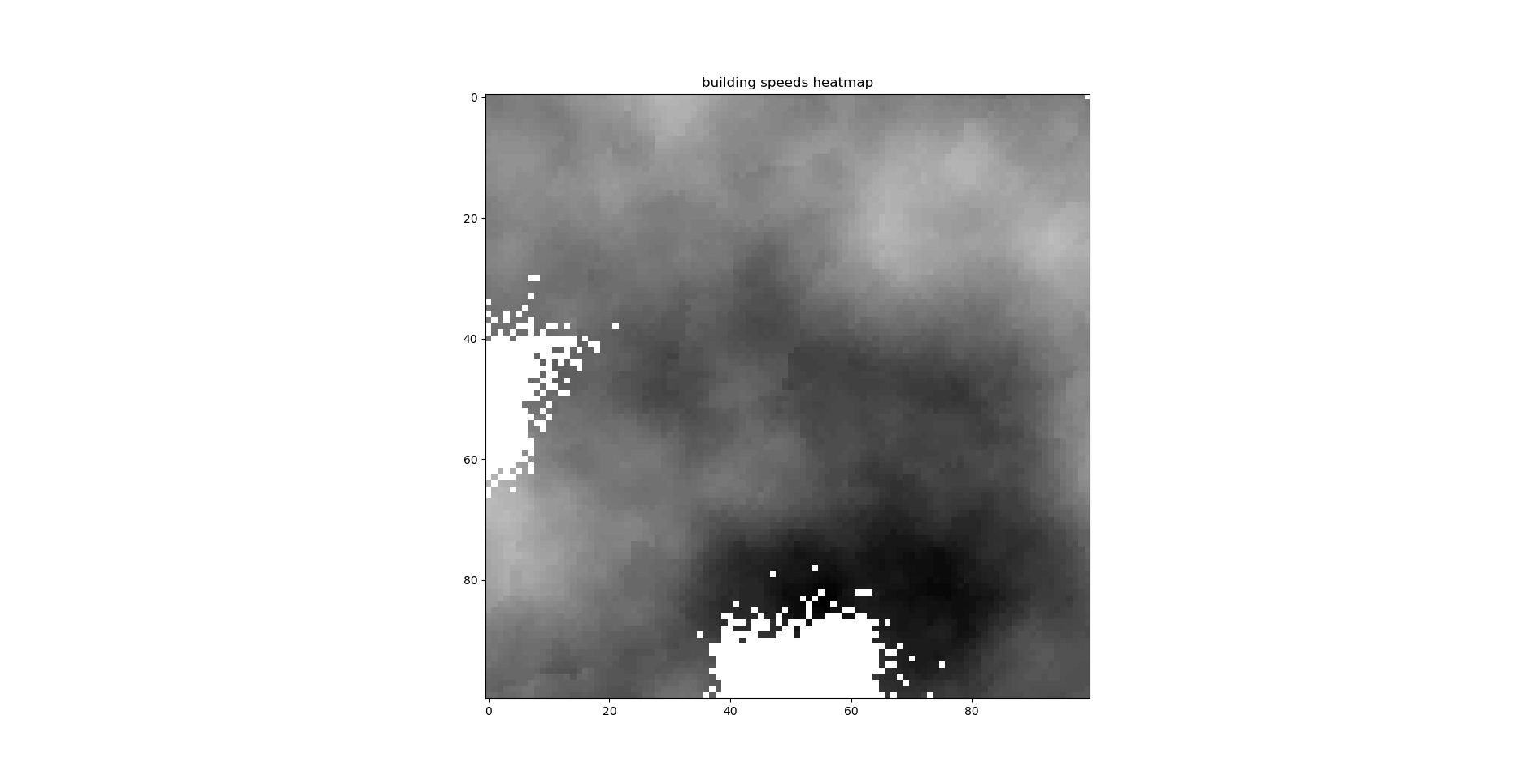 Buildings divided into neighbourhoods with buildings requiring higher speeds closer to the corners.