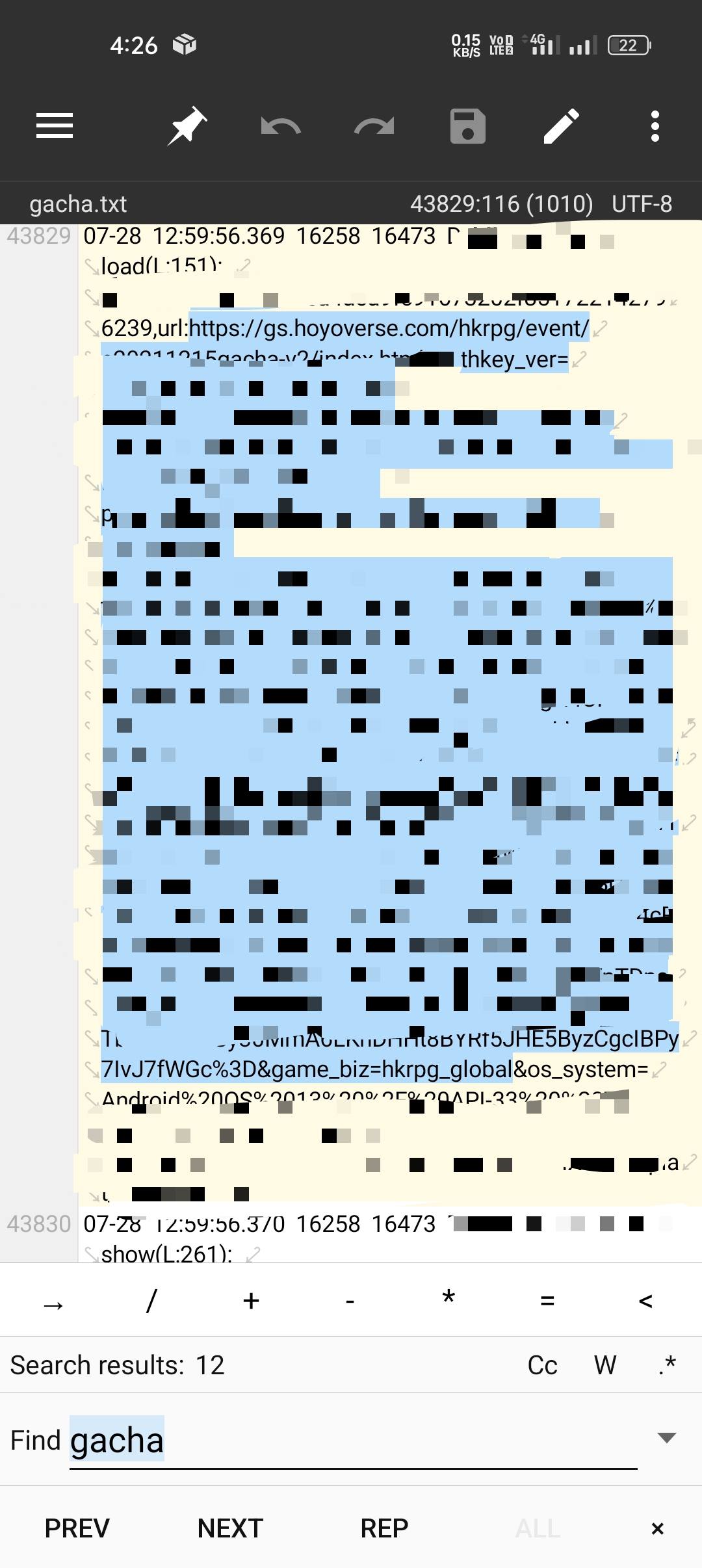strings gacha.txt | grep -Eo "https://gs.hoyoverse.com/[^ ]+global" | head -1Actually you can find URL without Termux, use your best apps teks editor, This time im using MT Manager, you can download here, and use keywords gacha to find the link