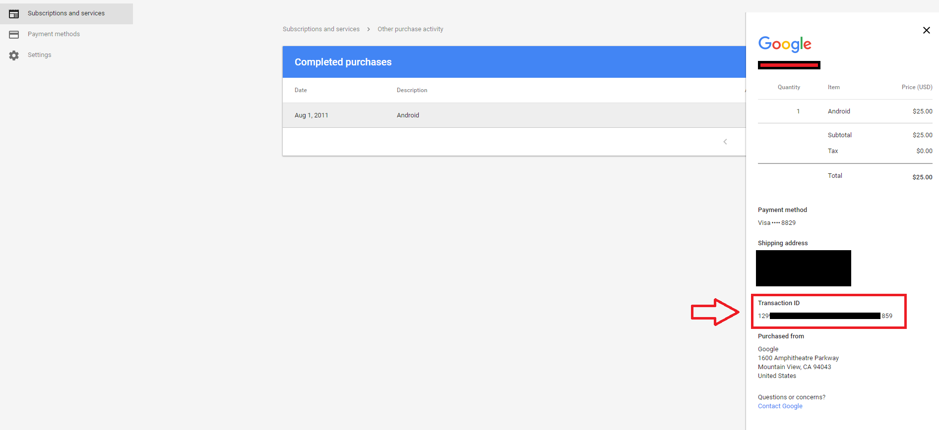 To easily find your Transaction ID for you Google Play Android Account, follow these steps: