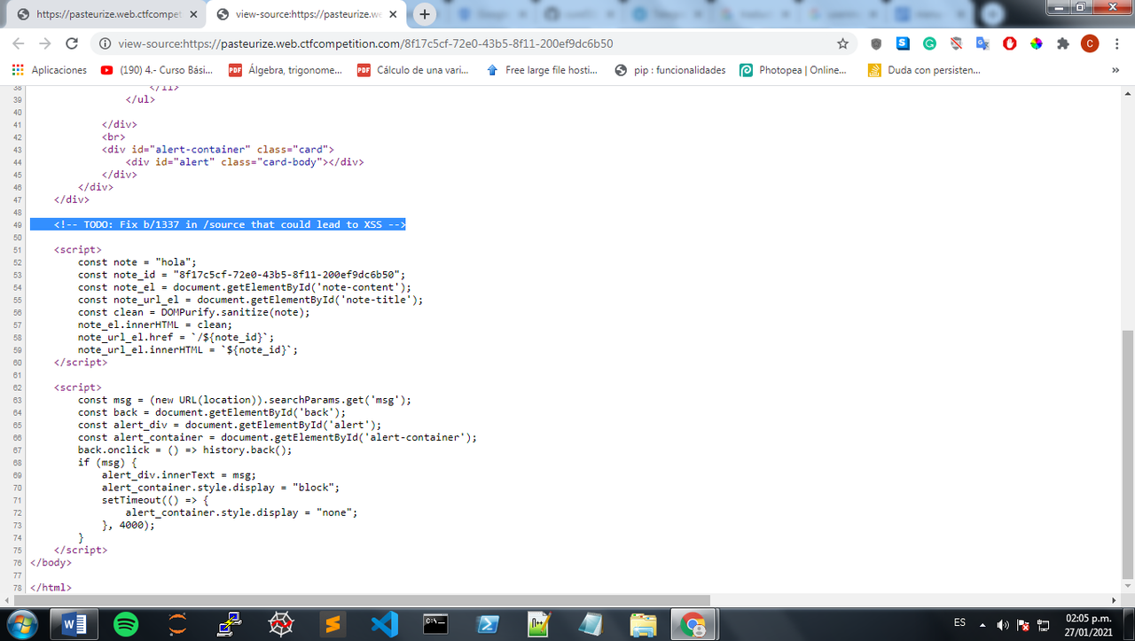 Al ver el HTML de la pagina vemos el siguiente codigo: