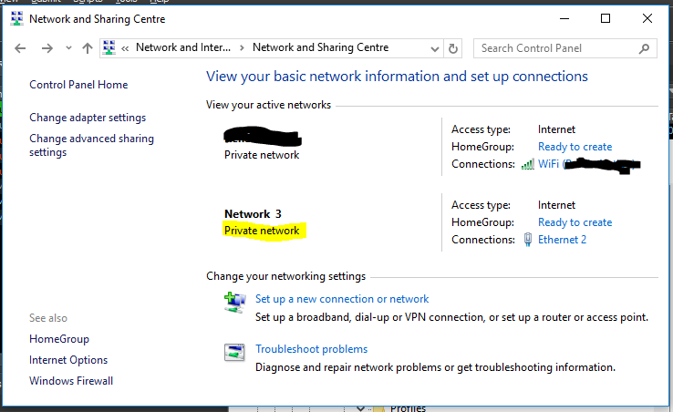 View Active Networks Panelentry for thePublic networkis now listed asPrivate Network
