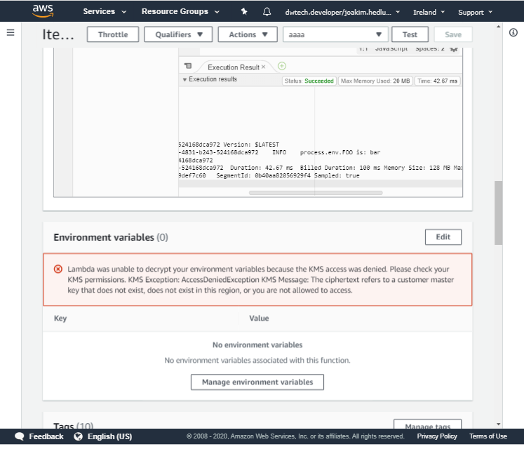 This Lambda showcases how you can prohibit certain users from seeing or interacting with the environment variables of a Lambda.