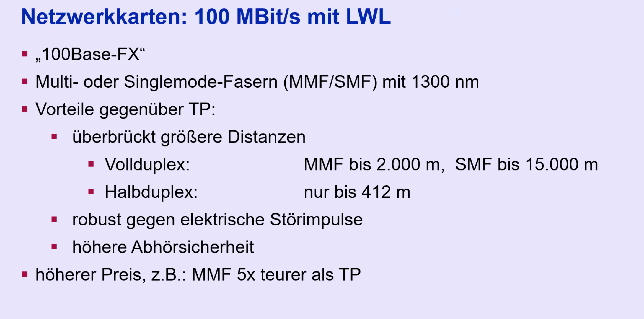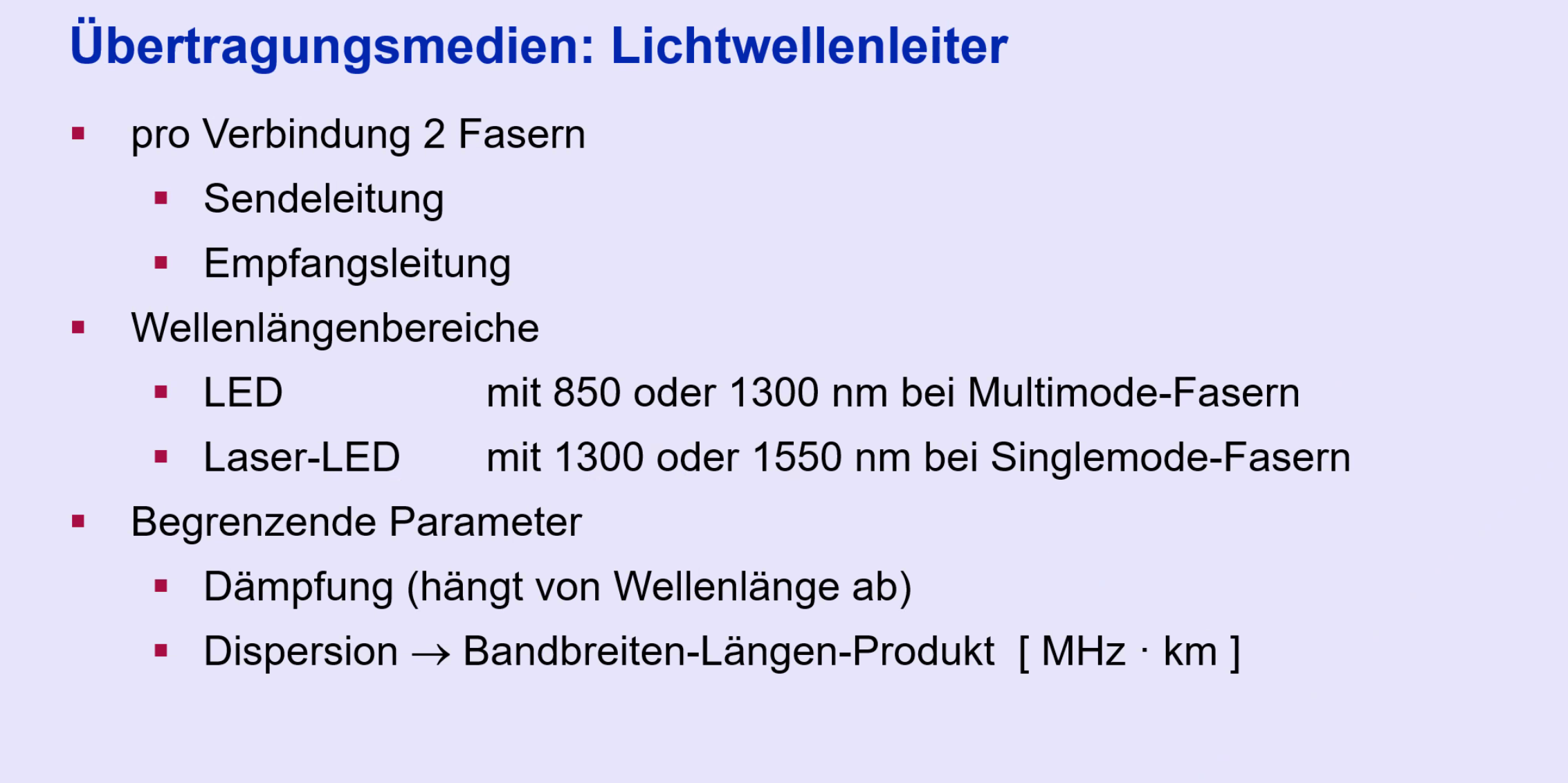 Wenn kurze Strecke, oder wenig Bandbreite (bis 40Gbit/s): Multimode