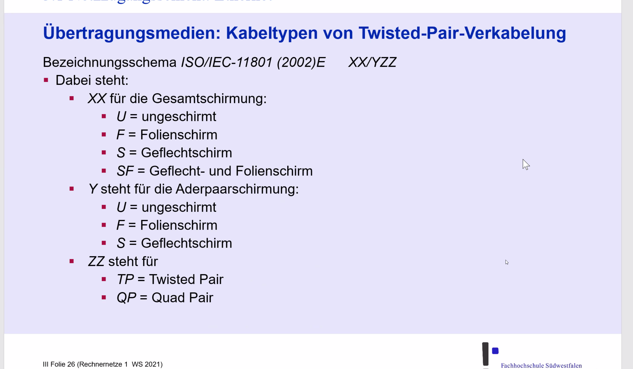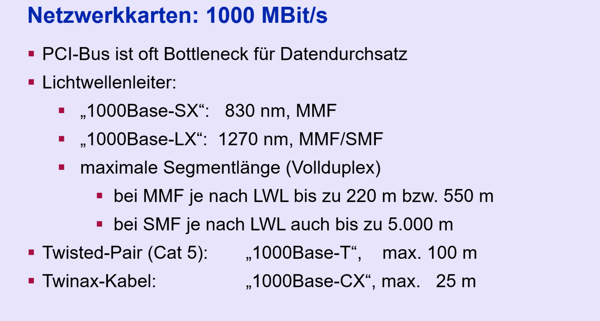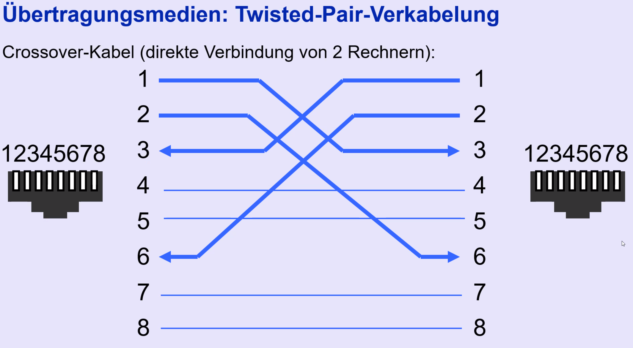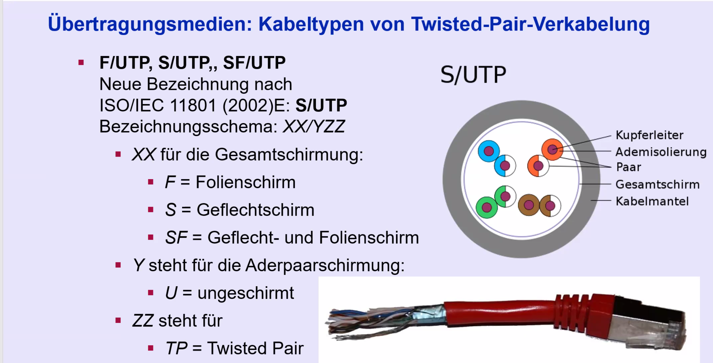 - Twisted Pair: verdrehte Leitungen sind stabiler als einfache