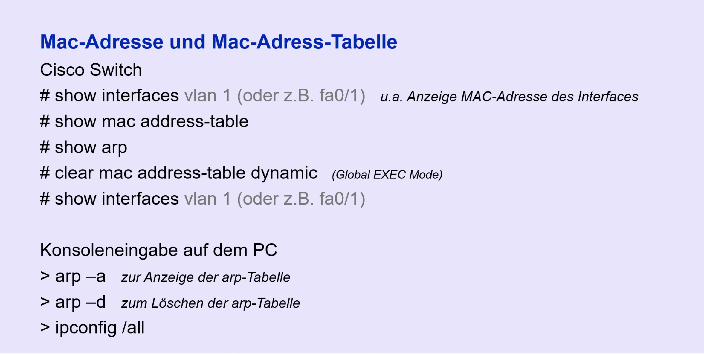 >arp -d (Zum Löschen der ARP-Tabelle)
