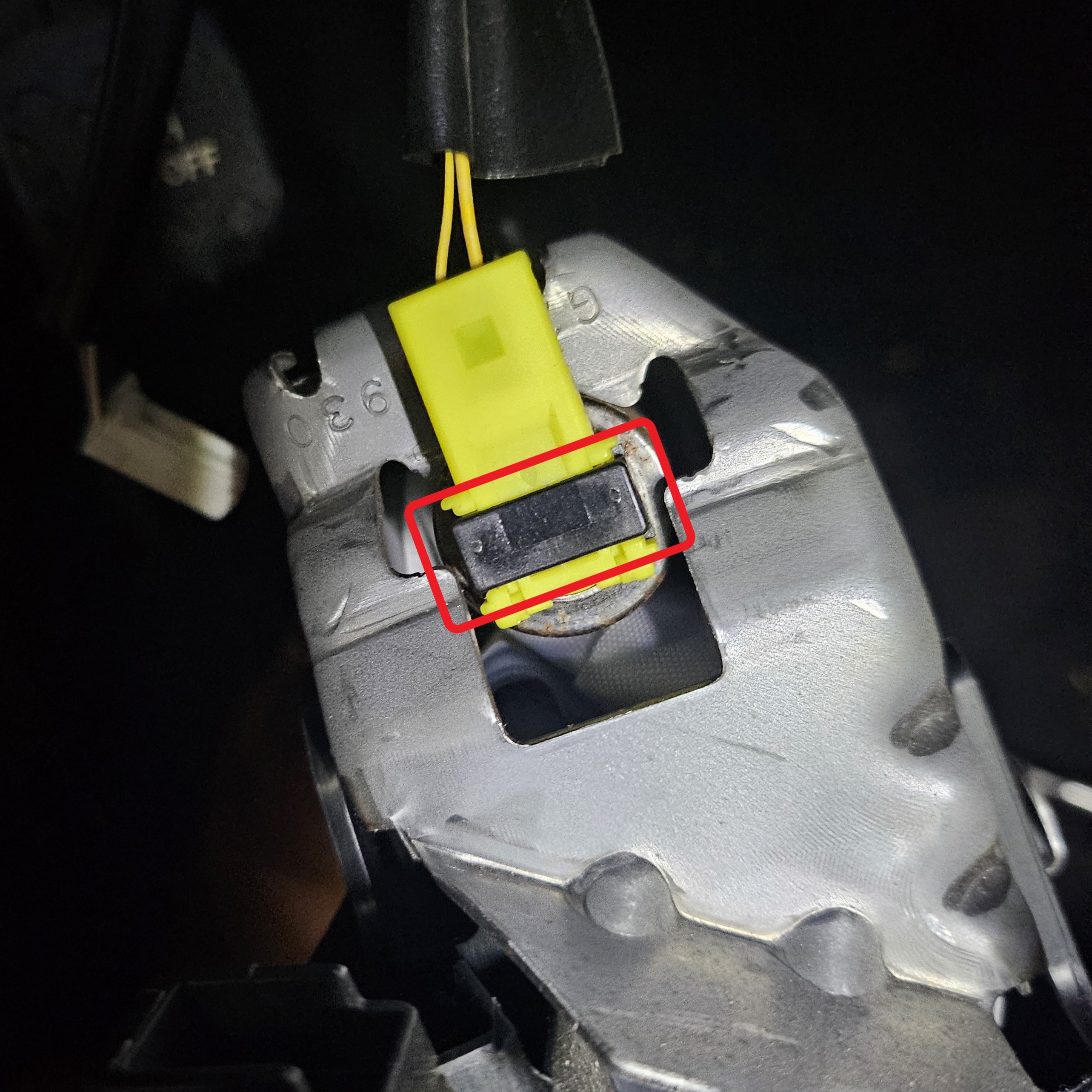 Carefully drop down the column while it is supported and locate the old EPS motor. Rotating and moving the column could help to get better access to the motor. Remove the two 12mm bolts and unclip the three black connectors.
