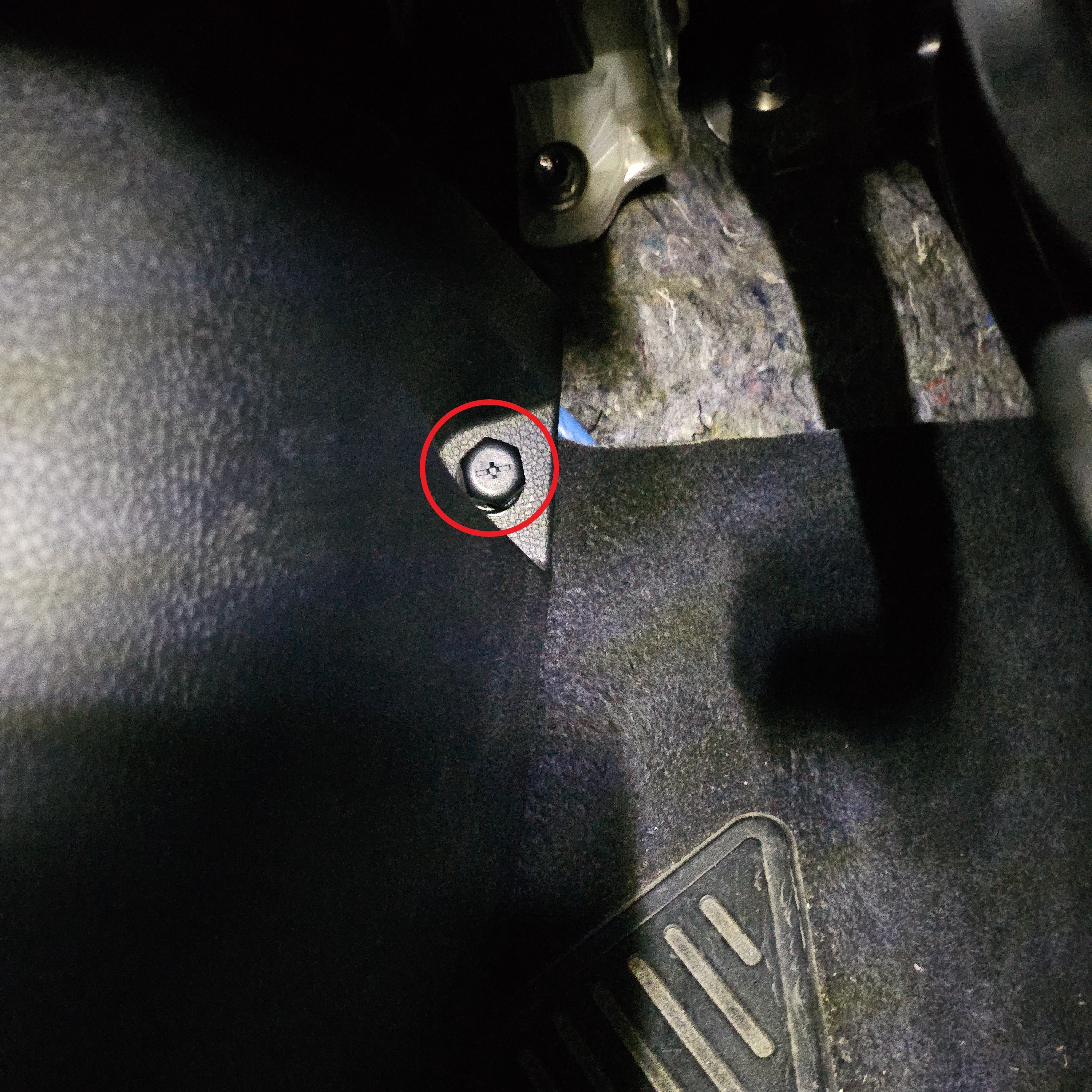 Then, remove the trim on the left of the footwell by unscrewing the plastic screw by hand and pulling the trim off.