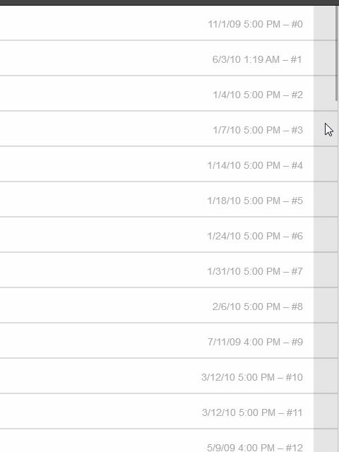 - When scrolled to the bottom, after infinite loads more content, the scrollbar should jump to it's new spot. Instead, it will stay where the cursor/finger is, causing another inifinite load.