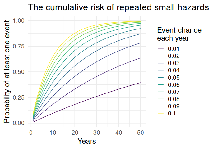 title = "The cumulative risk of repeated small hazards",