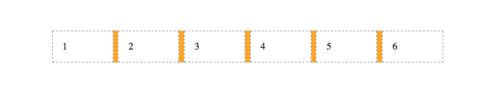 Now lets say that you only want 6 columns across with a gutter? Basically update the $arg to equal the number of elements and set the $gutter argument to true. Since there is no wrapping, there is no need to set the $margin value.