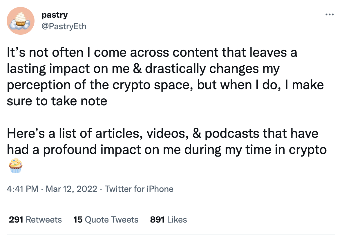 For a list of resources dedicated to NFTs, applications, community/social tokens and creator DAOs, please see a16z.com/nftcanon.