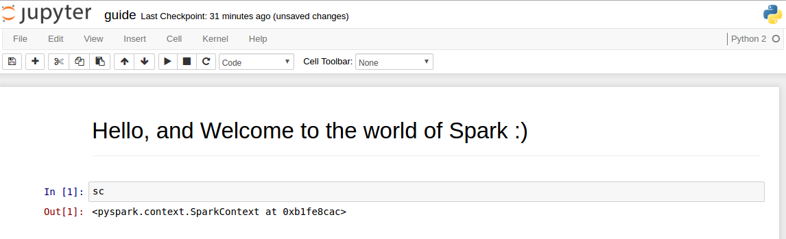 http://localhost:8001. This will open Jupyter in your browser, following which you can create a notebook and run PySpark commands from it.