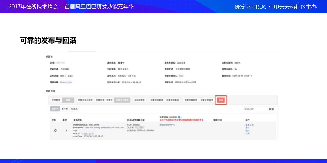 所以,研发了自研平台,今年将这套体系推到阿里云上供阿里云的用户使用。RDC和内部平台的核心是一致的,不同的是内部平台有自己的机房,有自己的资源管理方式。但是上云之后,数据库、负载均衡等基础设施都会使用阿里云上的。