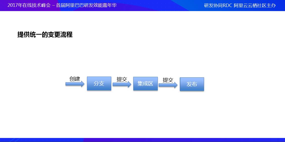 平台有统一的流程将这些问题记录下来:创建分支,提交集成区,提交发布。在这样整个标准的变更流程中,会把很多信息记录下来。