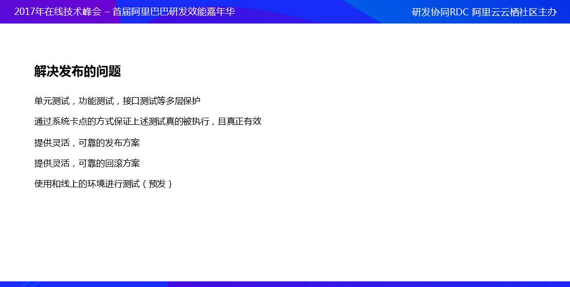 发布的问题总结来说:使用单元测试,功能测试,接口测试等多层保护;通过系统卡点的方式保证上述测试真的被执行,且真正有效;提供灵活,可靠的发布方案;提供灵活,可靠的回滚方案;使用和线上的环境进行测试(预发)。