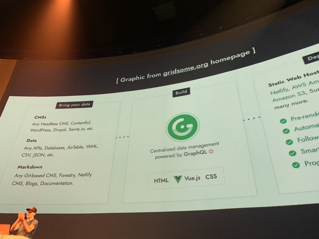 "Gridsome or Nuxt, doens't matter. Just go static."