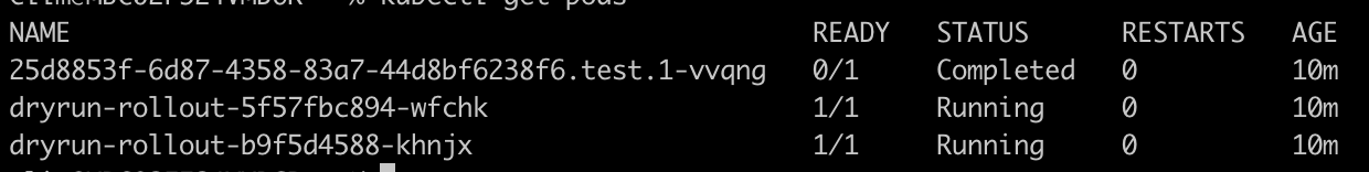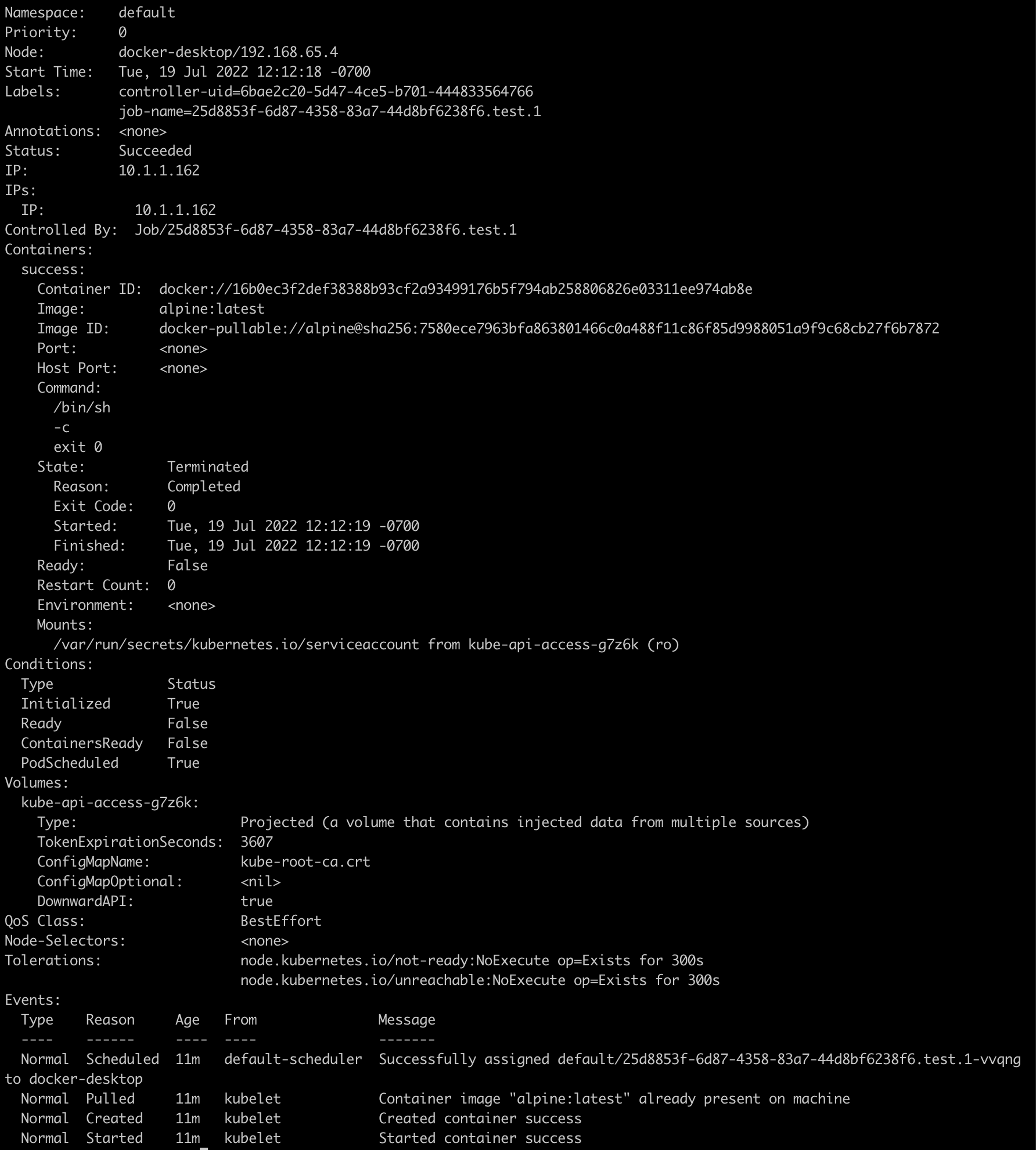 Runningstate.kubectl get podskubectl describe pod 25d8853f-6d87-4358-83a7-44d8bf6238f6.test.1-vvqngCleanup: