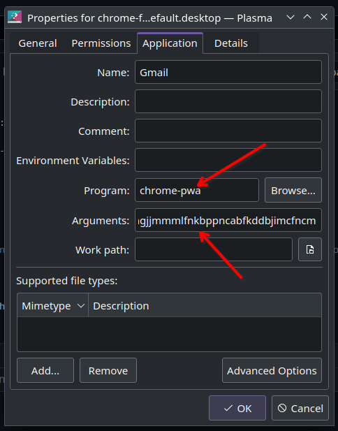 /opt/google/chrome/google-chrome --new-window --profile-directory=Default --app-id=$1 && xdotool search --sync --classname crx_$1 set_window --class crx_$1Then edit the .desktop file using this helper script: