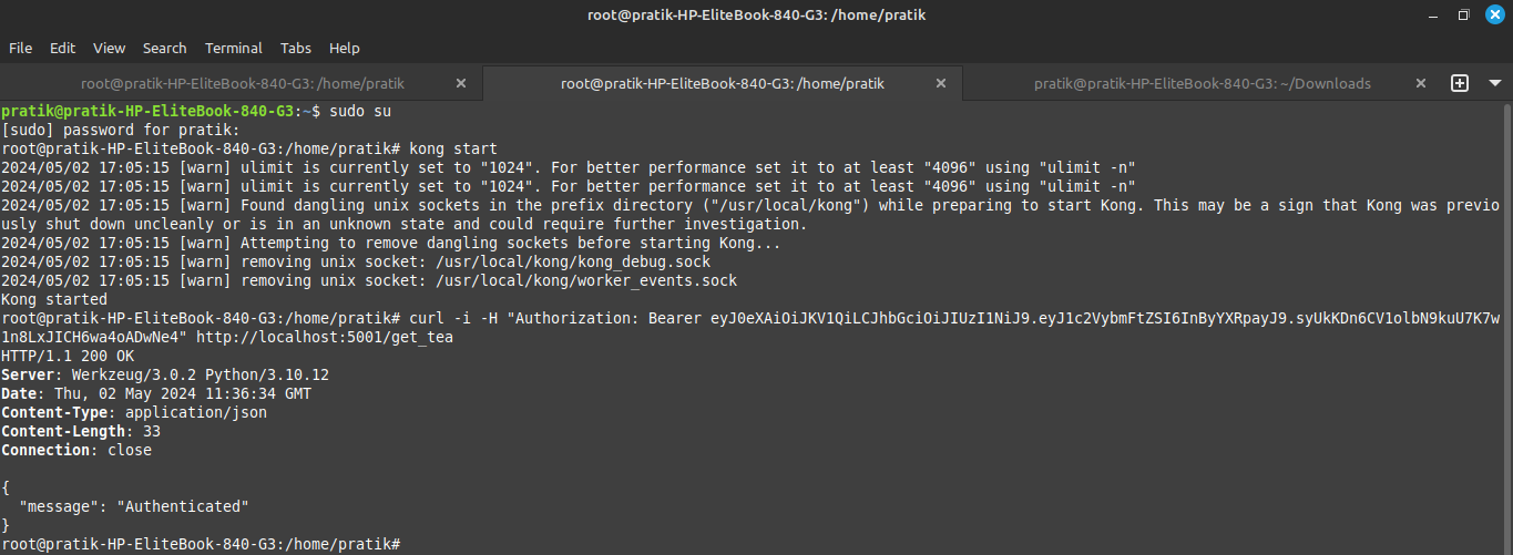 After running these commands, Kong will forward requests to http://localhost:8000/ and http://localhost:8000/get_tea to your Flask application running on port 5001.