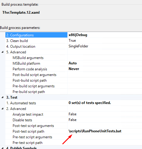 Once you have these, you can use custom scripts in TFS 2013 build definition to run phone tests using vstest.console command line. See the script RunPhoneTests.bat