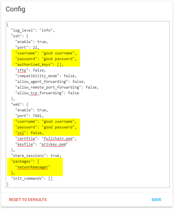 This addon allows more customization than the official ssh server addon and you will be making use of the "packages" option.