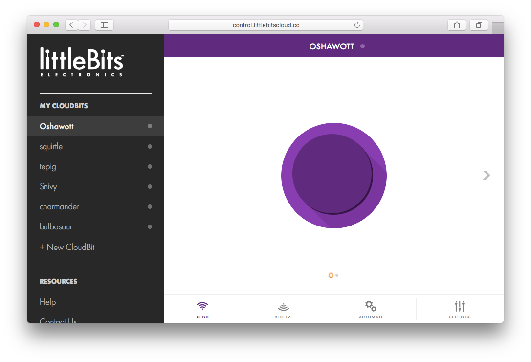 The first step to programming the bits is to sign on to the web portal at http://control.littlebitscloud.cc