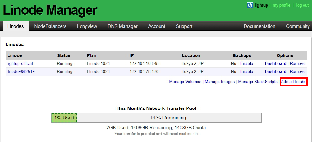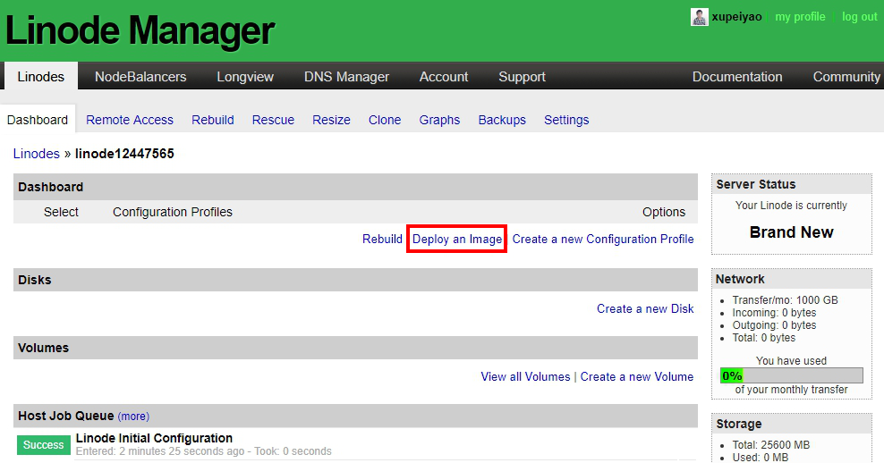 在Linode架設站台與安裝docker環境與簡單的網頁控制介面(2019/1/19) 一、前往 Linode 官網,點選右上方的Log in 二、輸入帳號密碼 三、登入後進入控制面板點選右下方Add a Linode建立新的 VM 四、虛擬基方案選擇Nanode 五、選擇主機地區為JP 六、建立後將會在控制面板看到一個狀態為Brand New的 VM,進入Dashboard 七、選擇部屬映像檔選項 八、選擇 Ubuntu 並設定 root 帳號密碼,點選Deploy部屬 九、等候 VM 狀態為 Runing 後進入 Dashboard 選擇 RemoteAccess 標籤 十、使用 SSH 工具或使用網頁版的 SSH 工具連入主機 十一、更新 apt-get install upgrade 十二、安裝 docker apt-get install docker.io 十三、檢查 docker 服務狀態為 active service docker status 十四、下載 portainer 映像 docker pull portainer/portainer 十五、建立 docker volume 用以儲存 portainer 設定 docker volume create portainer_data 十六、建立 docker container docker run -d -p 9000:9000 --name portainer --restart always -v /var/run/docker.sock:/var/run/docker.sock -v portainer_data:/data portainer/portainer 十七、使用VM公用IP連接VM Port 9000進入網頁版控制介面