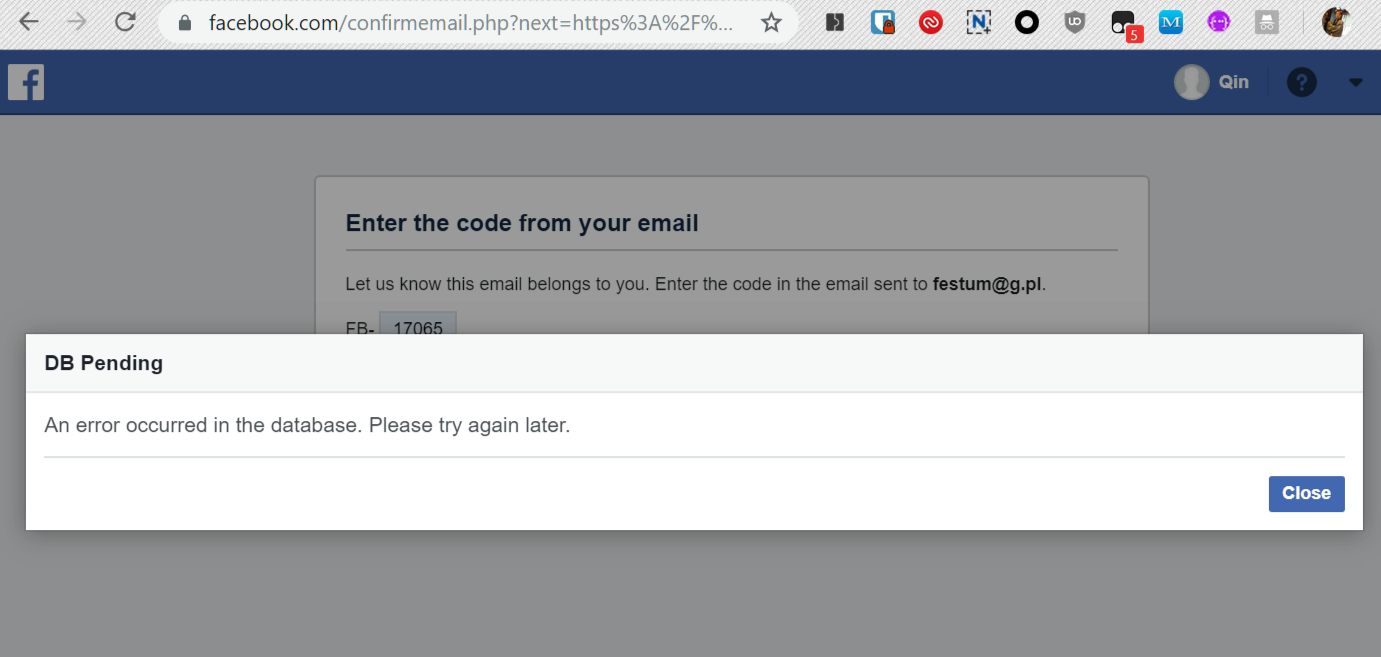 I've tried so many ways to reset the error on checkpoint. I created a fan page under my wife's account as my temporary identity.