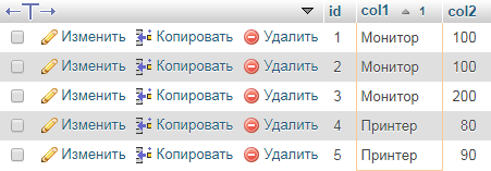 `col1`Результат: