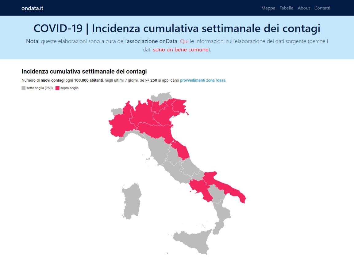 <meta property="og:description" content="COVID-19 | Incidenza cumulativa settimanale dei contagi - By ondata.it" /> |