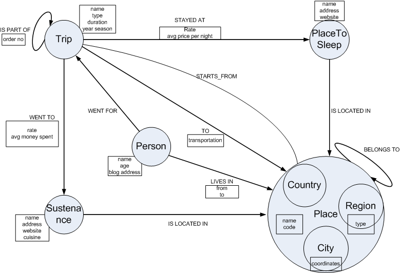 RETURN nextPlace.name as placePresented model already enables various recommendation as shown in use cases and it seems it has potential to be still expanded. The model can be enriched with additional relationships, like Person can FOLLOW another Person, Place IS CLOSE to another Place, additional labels can be added to places, like Island, Continent. These extra relationships and labels could help to improve the personalization of travel directions recommendations.