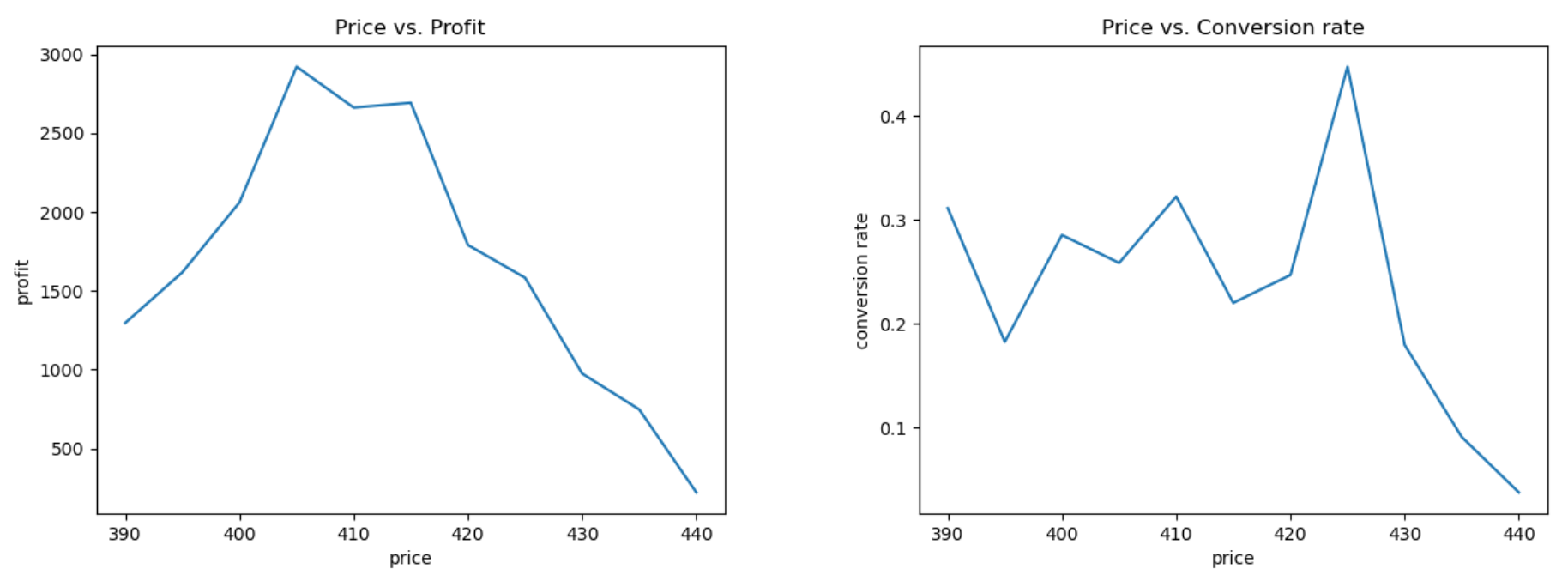 To predict the product amount sold, we simply construct a Random Forest model as a mapping between price and demand. The figures below show the expected relationship between price and the rewards.