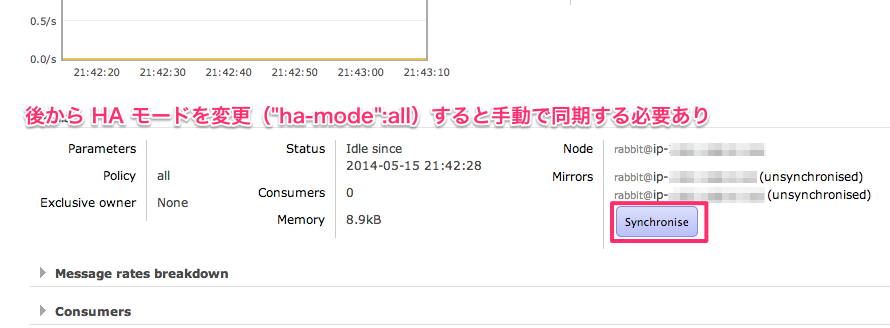 - キューの HA モードを変更した場合にパターンにマッチするキューは手動でキューの同期を行う必要がある