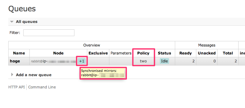 HA 構成に必要と思われる set_policy とか clear_policy とか list_policies とか。ここ見よう。