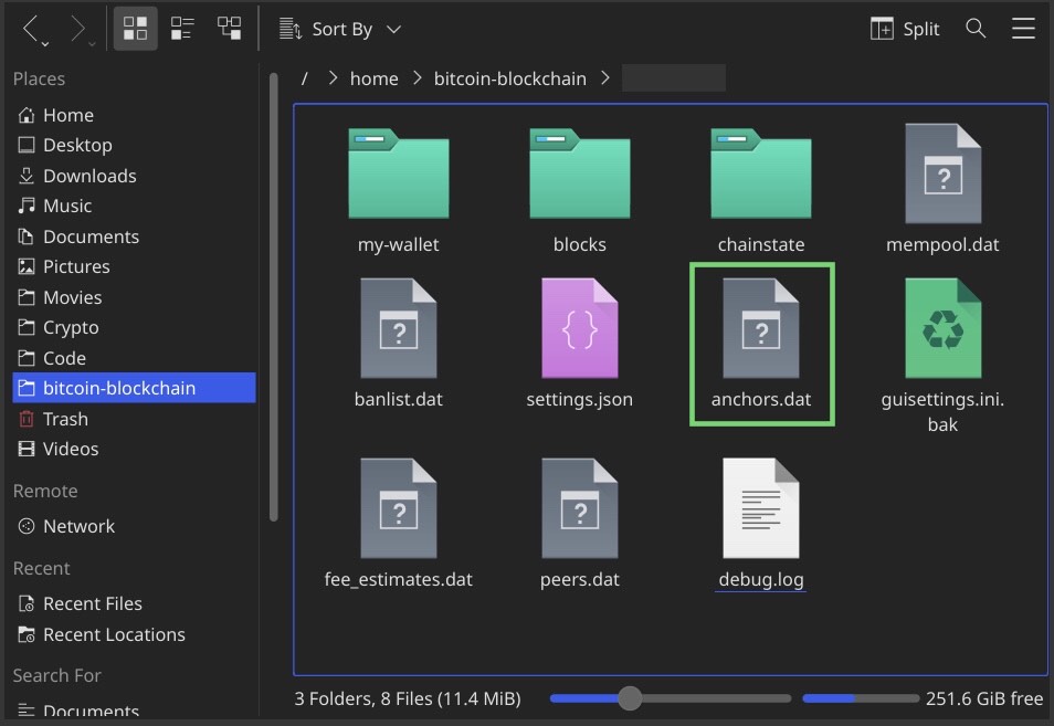 Restart your node, then navigate to your data directory. The image below is the data directory for a Bitcoin node while it is running. Notice that the anchors.dat file is missing. This is the expected behavior.