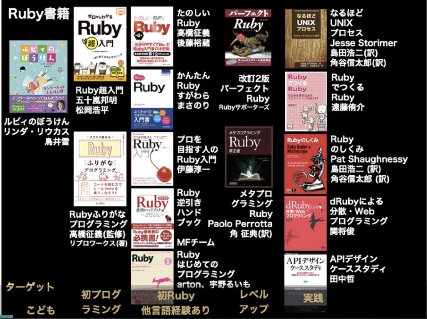 現状で入手しやすい類書は特にない。和書既刊では出版年が5年以上前のものが中心になる。Ruby3に対応しているこのレベルの類書は無い。以下に参考までに具体的な書名を挙げる。