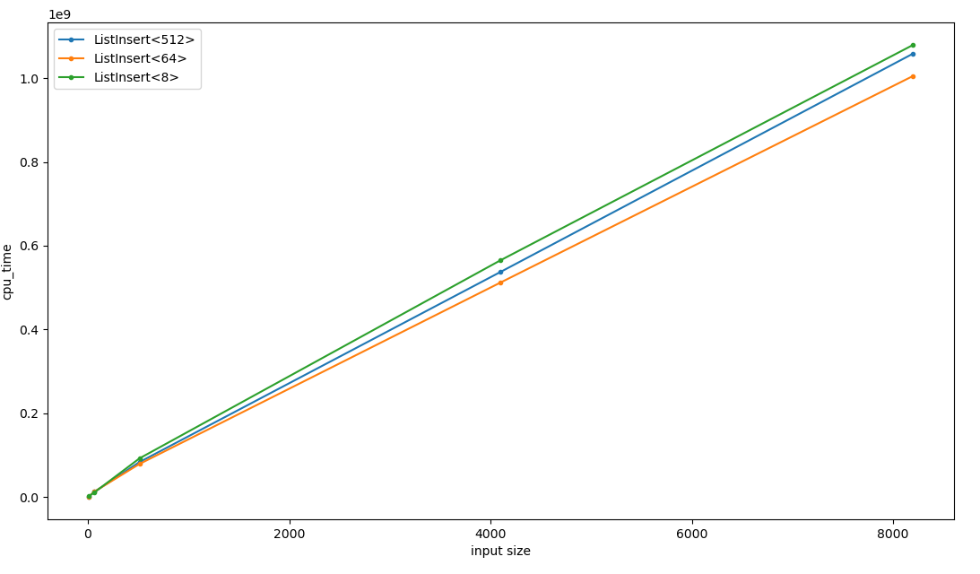 | BENCHMARK_TEMPLATE(ListInsert, 8)->Range(8, 8 << 10); | |
