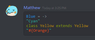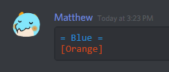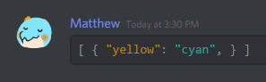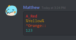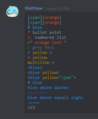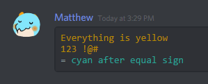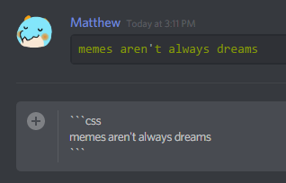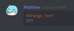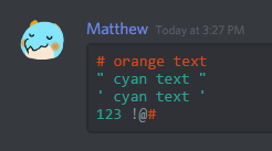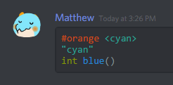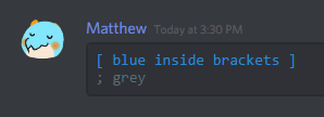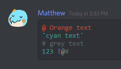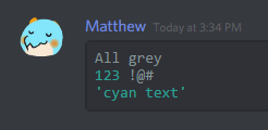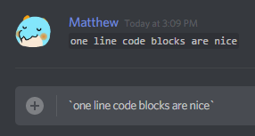 Discord also supports code blocks as well. You can make your own code blocks by wrapping your text in backticks (`)