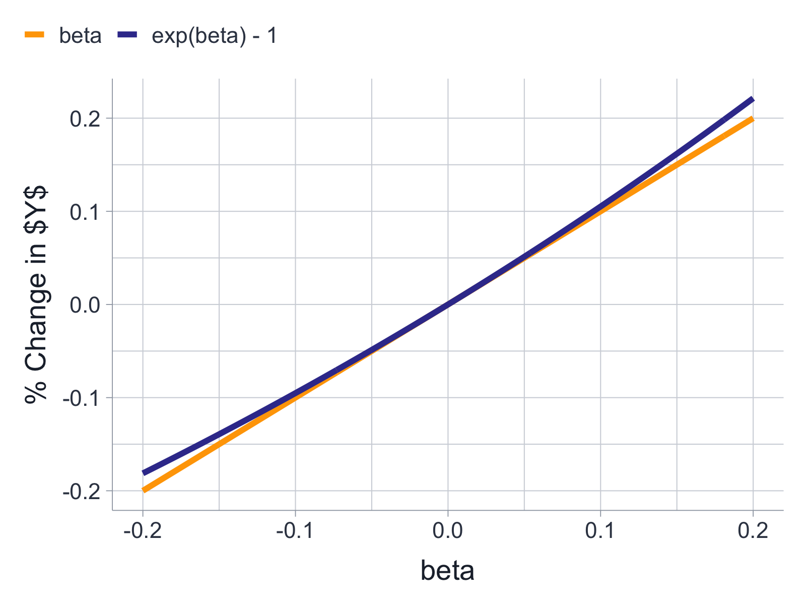exp_minus_1 <- exp(beta) - 1(plot_pct_change_appxoimation <- ggplot() +